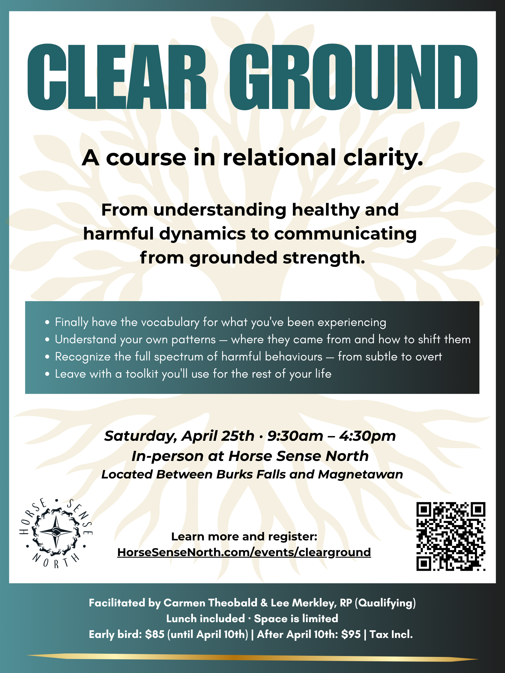 COST: Early bird: $85 (until April 10th) | After April 10th: $95 | Tax Incl.